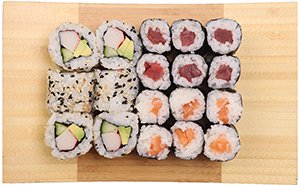à 6 Stück falls nichts anderes angegebenLachsavokado Tobikko